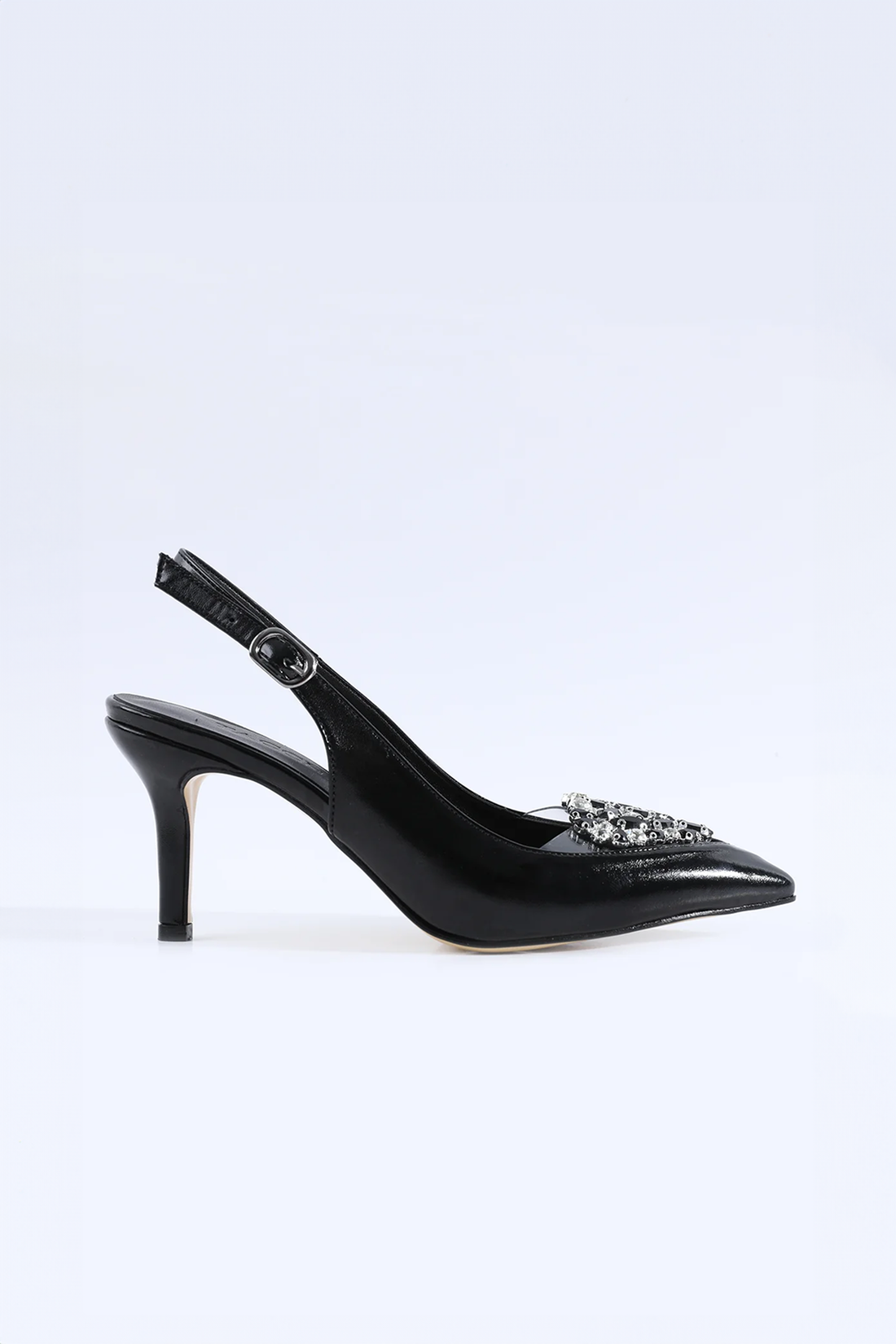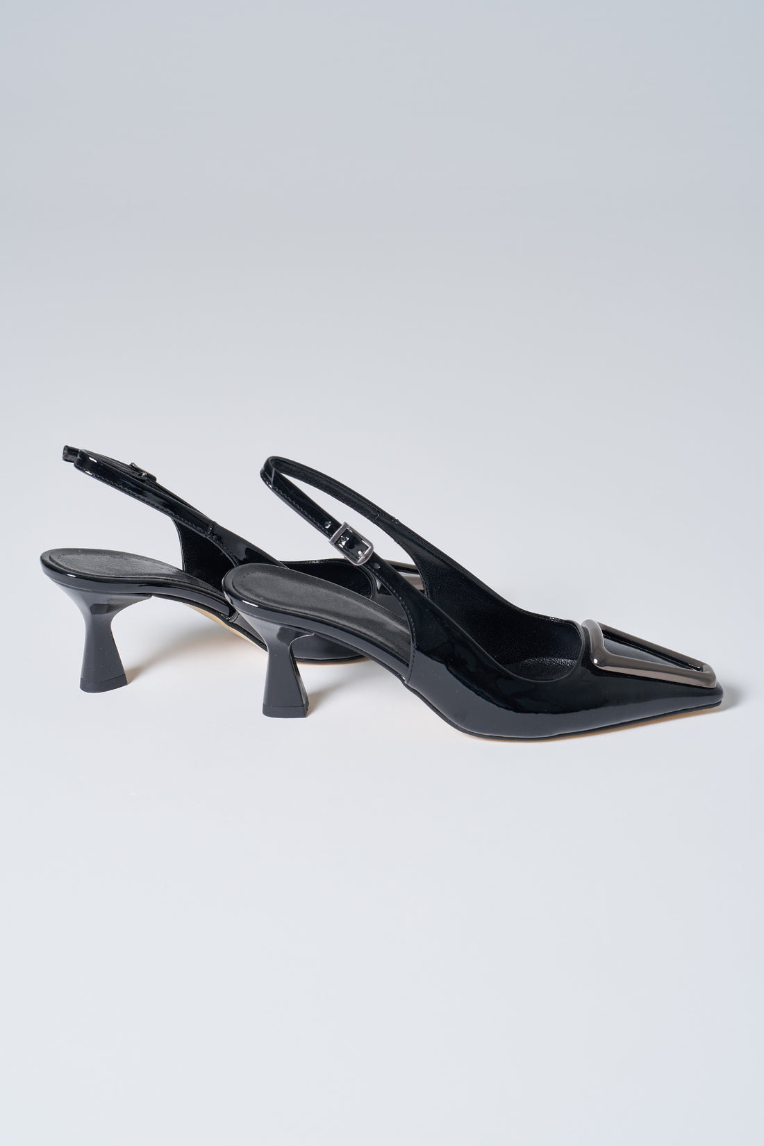 Majesty Trok Detail Slingback Closure Black Heeled Shoes