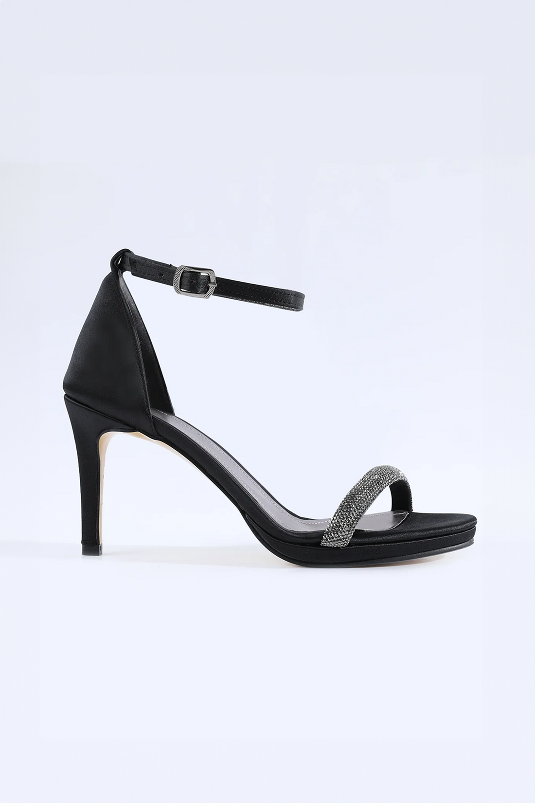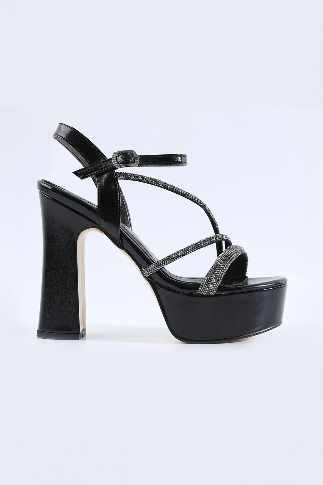Verona Stone Embellished Cross Strap Black Platform Shoes