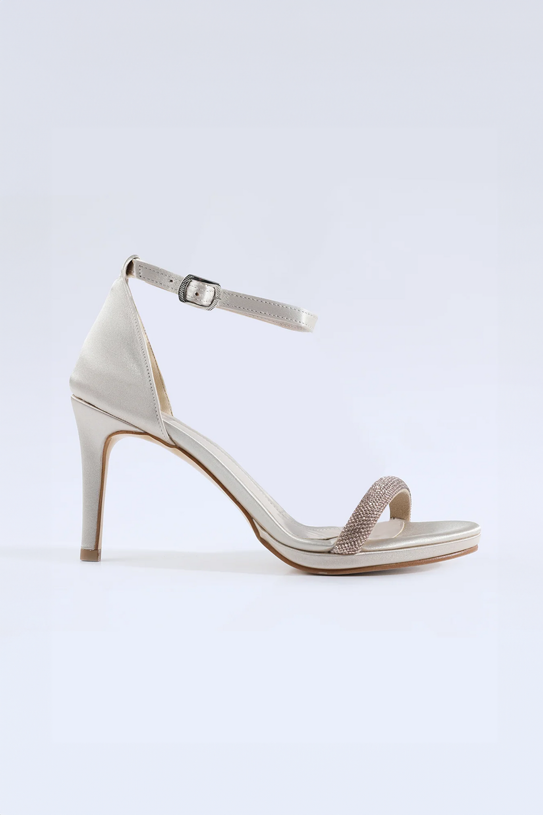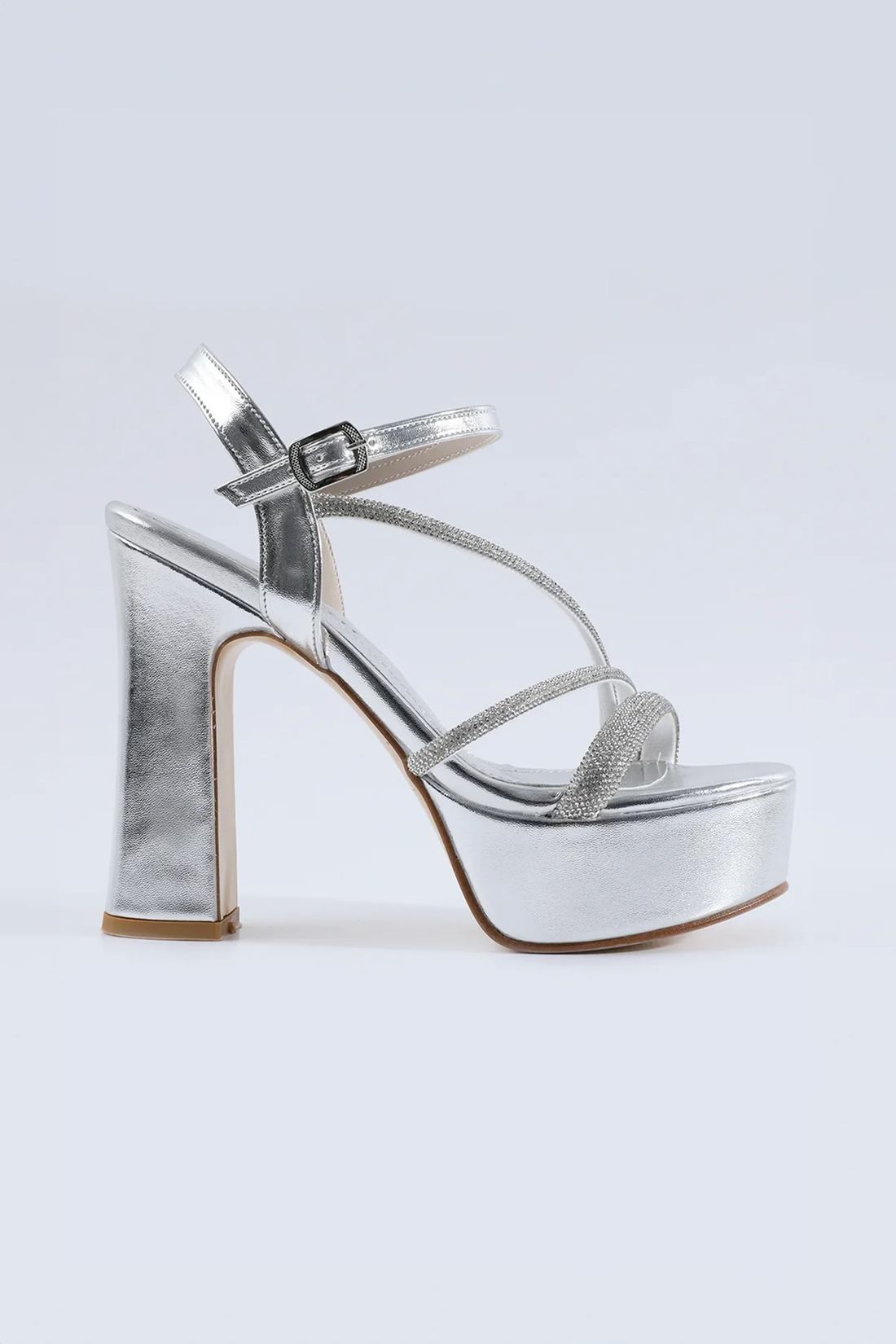 Verona Stone-Embellished Cross-Strap Silver Platform Heels