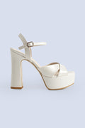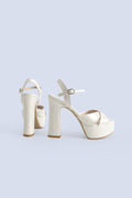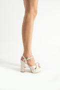 Bella Pearl Leather Platform Strappy Bridal Heels