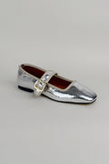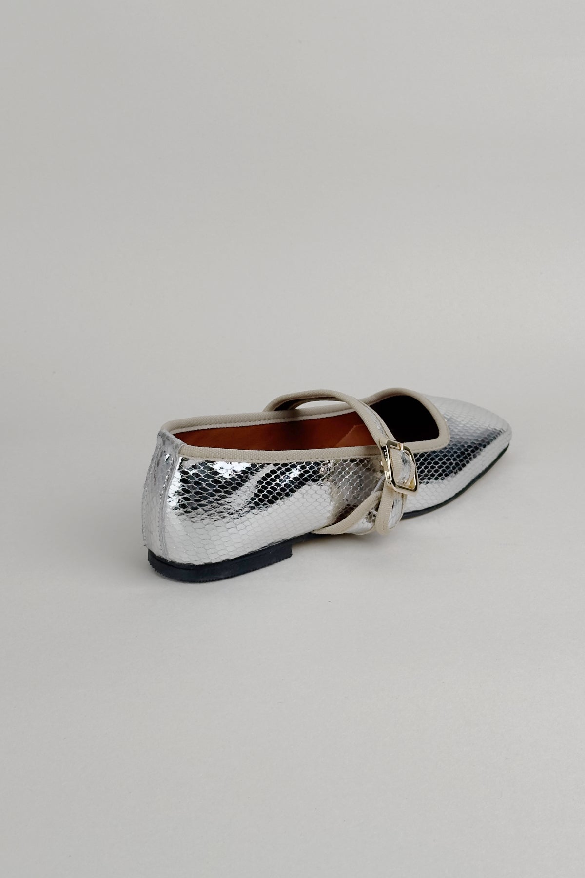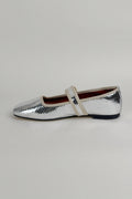 Elora Buckle Detail Croc Patterned Silver Flat Ballet Flats