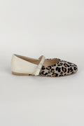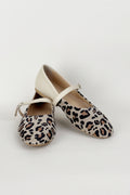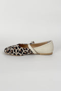 Savina Leopard Pattern Ankle Strap Beige Mink Ballet Flat