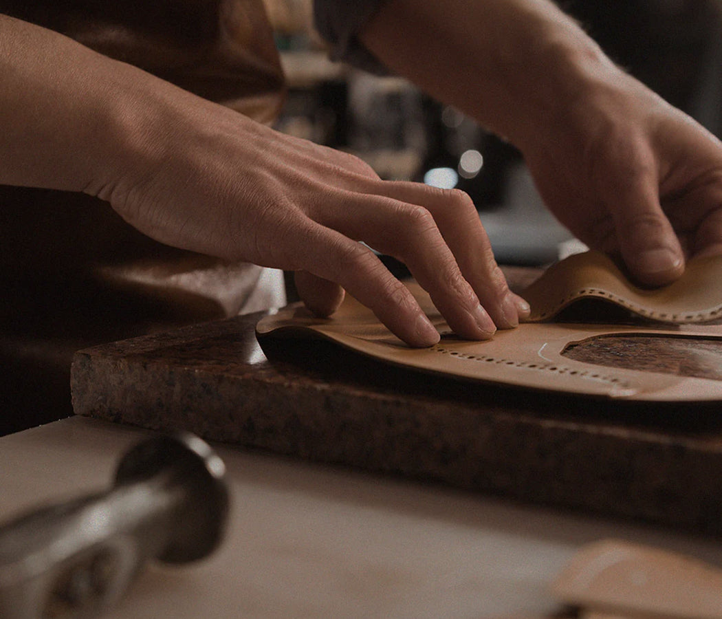 Tacchi’de bir ayakkabının yolculuğu, önce malzemenin dokusuna dokunmakla başlar.