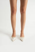 Avoria Pearl Flats, zarif görünümü rahatlıkla birleştirmek isteyen gelinler için özel olarak tasarlanan saten gelin babetidir. Minimal ve modern çizgilerle şekillenen bu model, ön kısmındaki inci dizilimiyle sade şıklığı ön plana çıkarır. Dokusu yumuşak saten kumaş, gelinliğin ışığını nazikçe yansıtarak bütünlük sağlayan bir görünüm sunar.