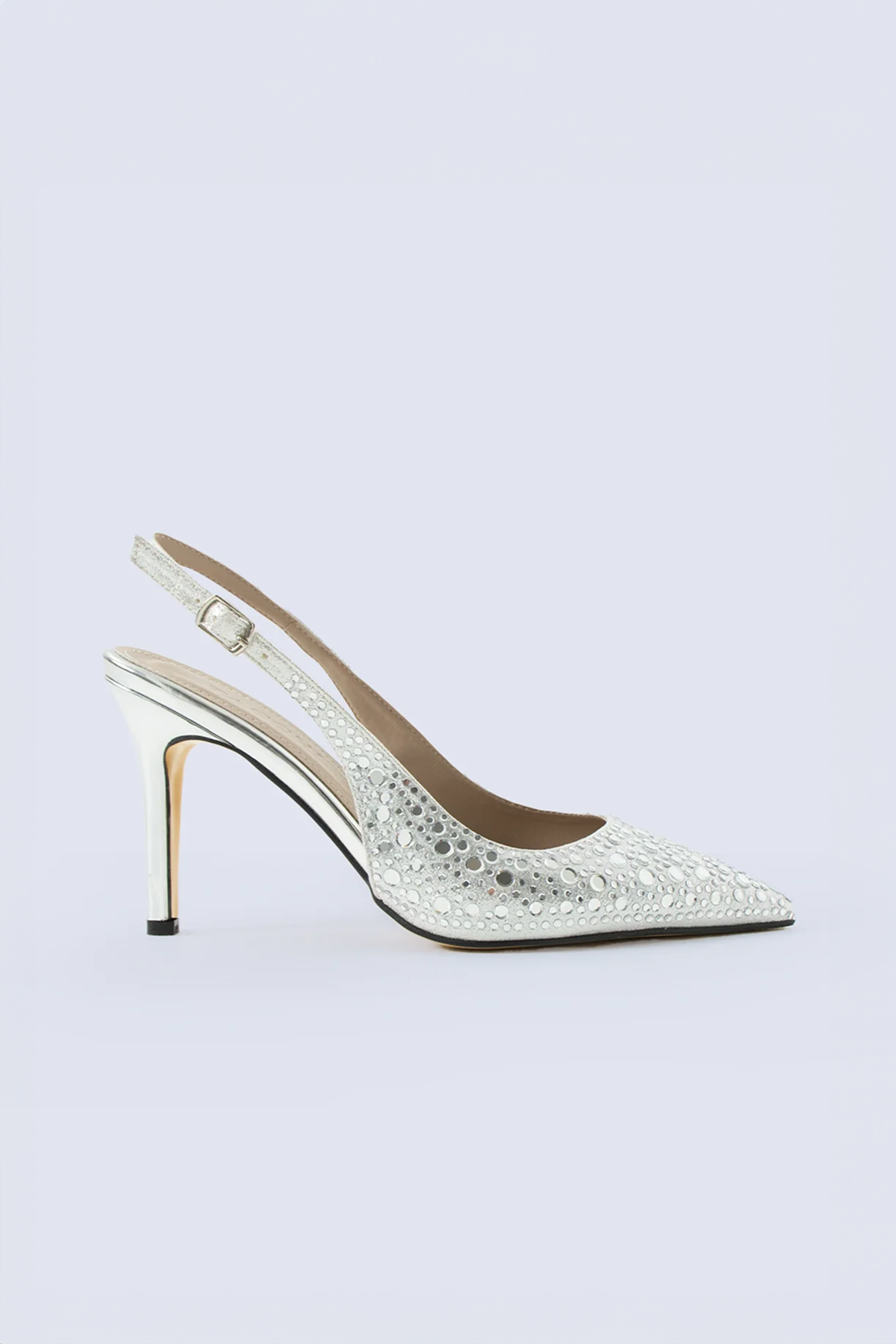 Lucente Trop Detaylı Gümüş Abiye Ayakkabı
