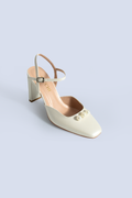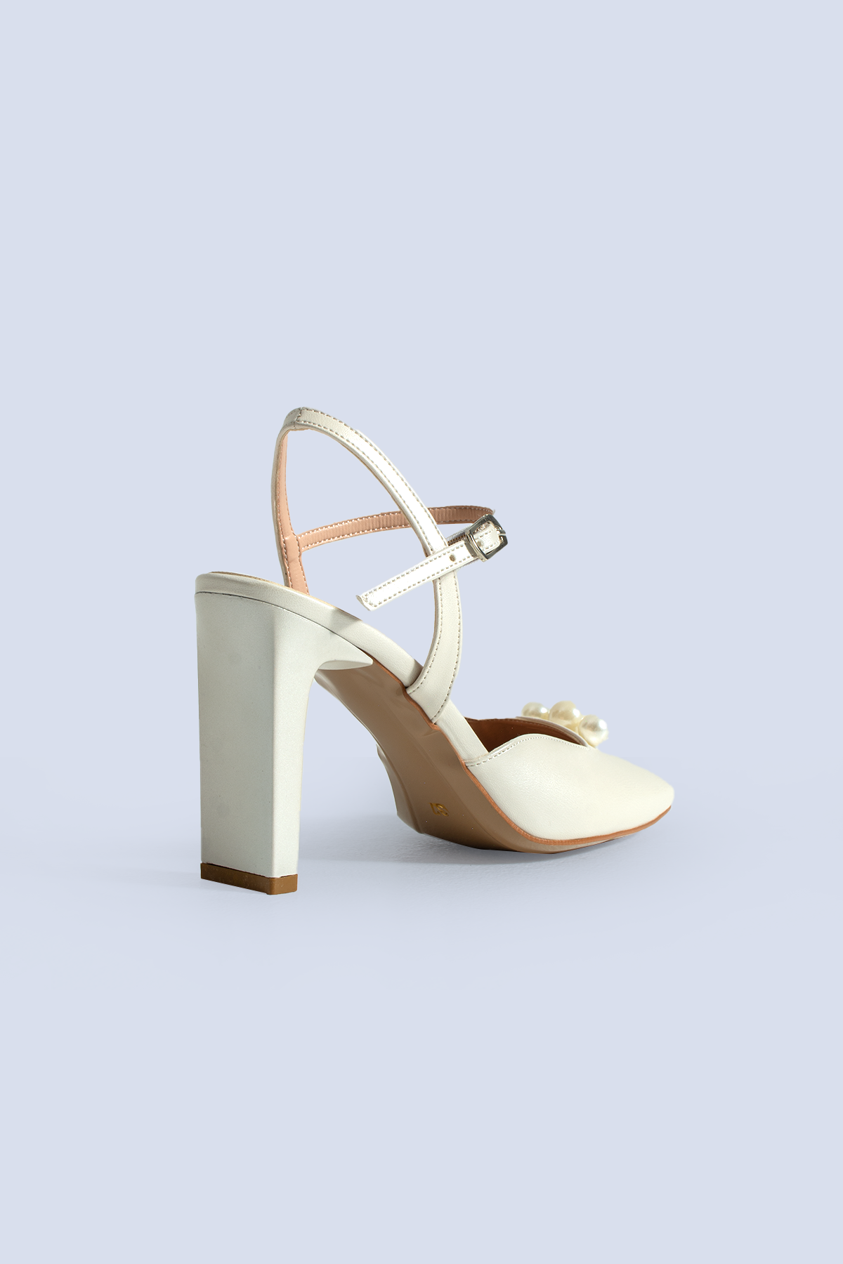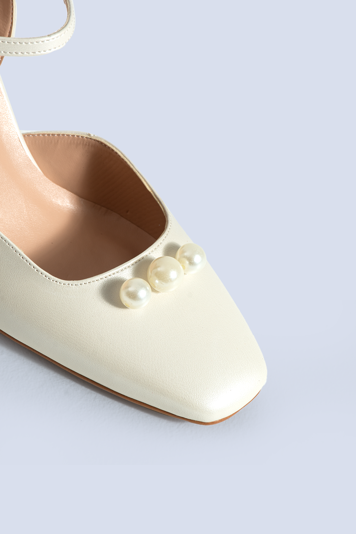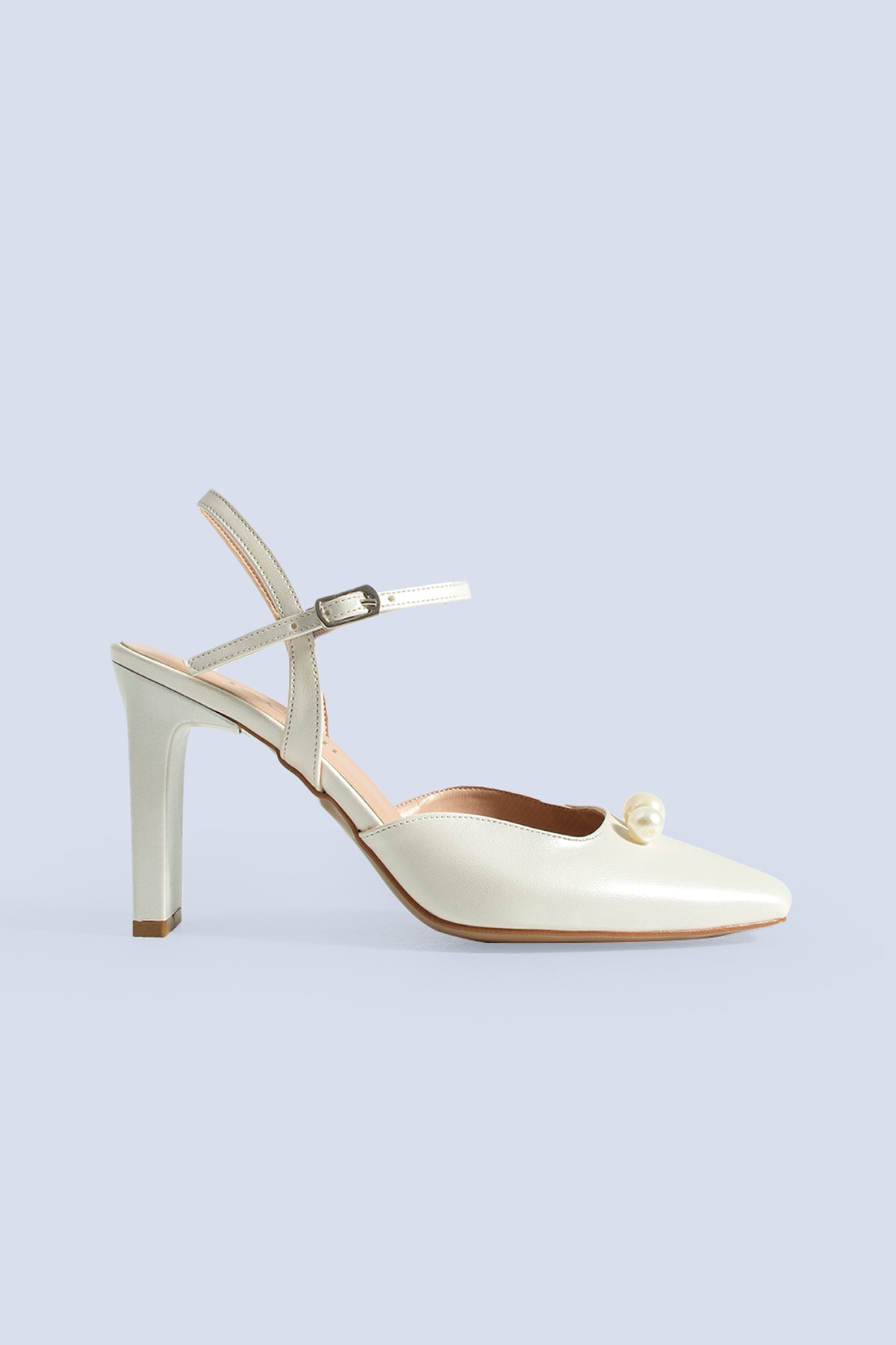 Lustre Sedef Pearl Sling 90 - İnci Detaylı Kare Topuk Gelin Ayakkabısı