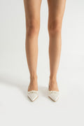 Petalia Sedef Flats, zarif detaylarıyla konforu bir araya getiren modern bir gelin babeti arayanlar için özenle tasarlanmıştır. Saten dokusunun yumuşak parlaklığı, gelinliğin doğal ışıltısını desteklerken, ön kısımdaki minyatür çiçek işlemeleri modele romantik ve özel bir karakter kazandırır. 2 cm topuk yüksekliği, hem zarif bir duruş hem de gün boyu rahat hareket imkânı sunmayı amaçlar.
